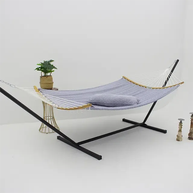 In conclusione, un L'amaca da esterno è più di un semplice mobile: è una porta verso il relax, il comfort e la tranquillità. Che tu voglia rilassarti nel tuo giardino, rilassarti in campeggio o aggiungere un tocco di stile al tuo spazio all'aperto, le nostre amache di Hammock Leisure Products (Zhejiang) Co., Ltd. sono la soluzione perfetta. Realizzate con materiali di alta qualità, progettate per durare nel tempo e disponibili in una varietà di colori e stili, le nostre amache offrono il massimo comfort all'aperto.
